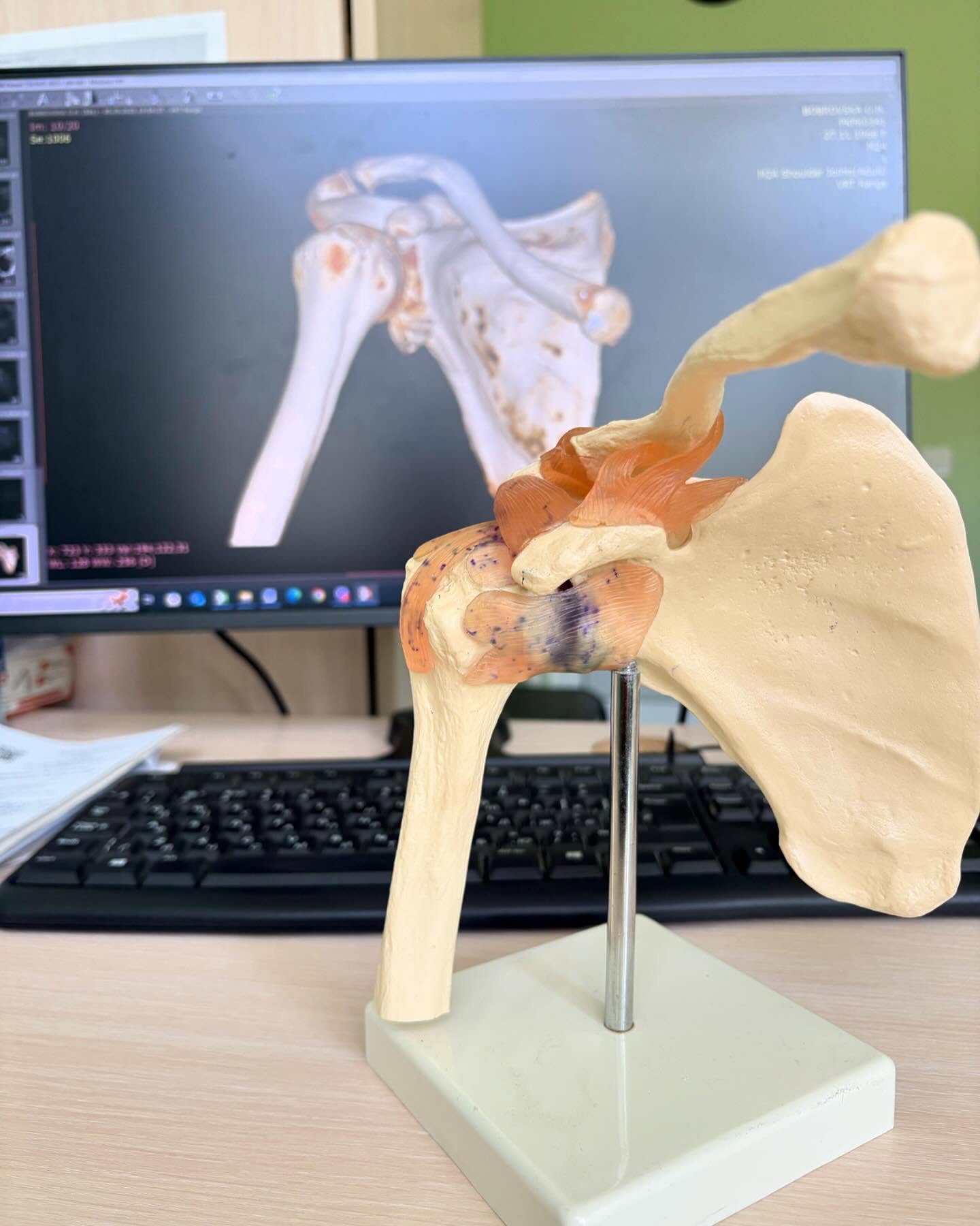 Пластиковый макет плечевого сустава – лучший способ объяснить пациенту, в чем его проблема, поскольку анатомическая модель предоставляет точную визуализацию скелетного устройства плеча.Также не обойтись без тестов, МРТ и/или компьютерной томографии, что в комплексе даёт полную картину во время очного осмотра.